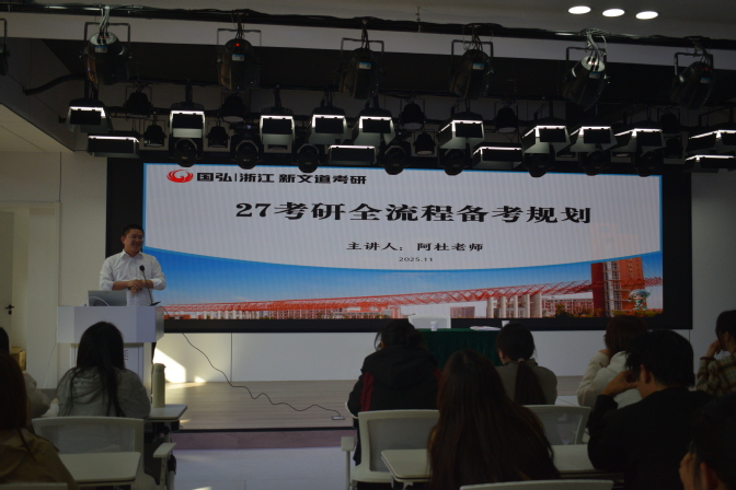 夏春晓首先致欢迎辞。接着杜长富直奔主题:梳理了当下大学生普遍面临的“就业还是考研”“跨专业是否可行”等迷茫问题,并以比亚迪校招薪资、杭州教育局教师招聘硕士占比超77%等真实数据,直观展现学历对就业竞争力、薪资水平的关键影响,强调考研在职业发展中的重要价值。讲座中,杜长富详细梳理了考研全流程关键时间节点,从报名到初试,再到成绩公布、国家线发布,以及复试调剂这一完整时间轴,并详解初试与复试的考查重点。针对公共课复习,他给出具体建议:政治需掌握1273个核心知识点,聚焦马原理、毛中特等重点模块;英语需攻克5500大纲词汇与96种长难句,强化阅读与写作能力。随后,杜长富向同学们区分了学术型硕士和专业型硕士的概念,讲述了二者之间的区别。针对学生最关心的“如何择校择专业”,杜长富提出“漏斗式选择法”:先定专业(决定工作方向)、再选地区(锁定发展生态圈)、最后择院校(匹配“敲门砖”含金量)。他详细解读了我国14大学科门类的分类逻辑,将专业划分为基础理论类、能力类、技术类,并给出跨专业考研建议——优先“平层跨考”,降低备考难度。最后,杜长富提出“考研100%成功五大环节”——科学计划、优质资料、精品课程、定时测试、及时答疑,鼓励学生打破“信息差”,避免“盲目备考”,通过精准定位与系统复习实现“一战成硕”。