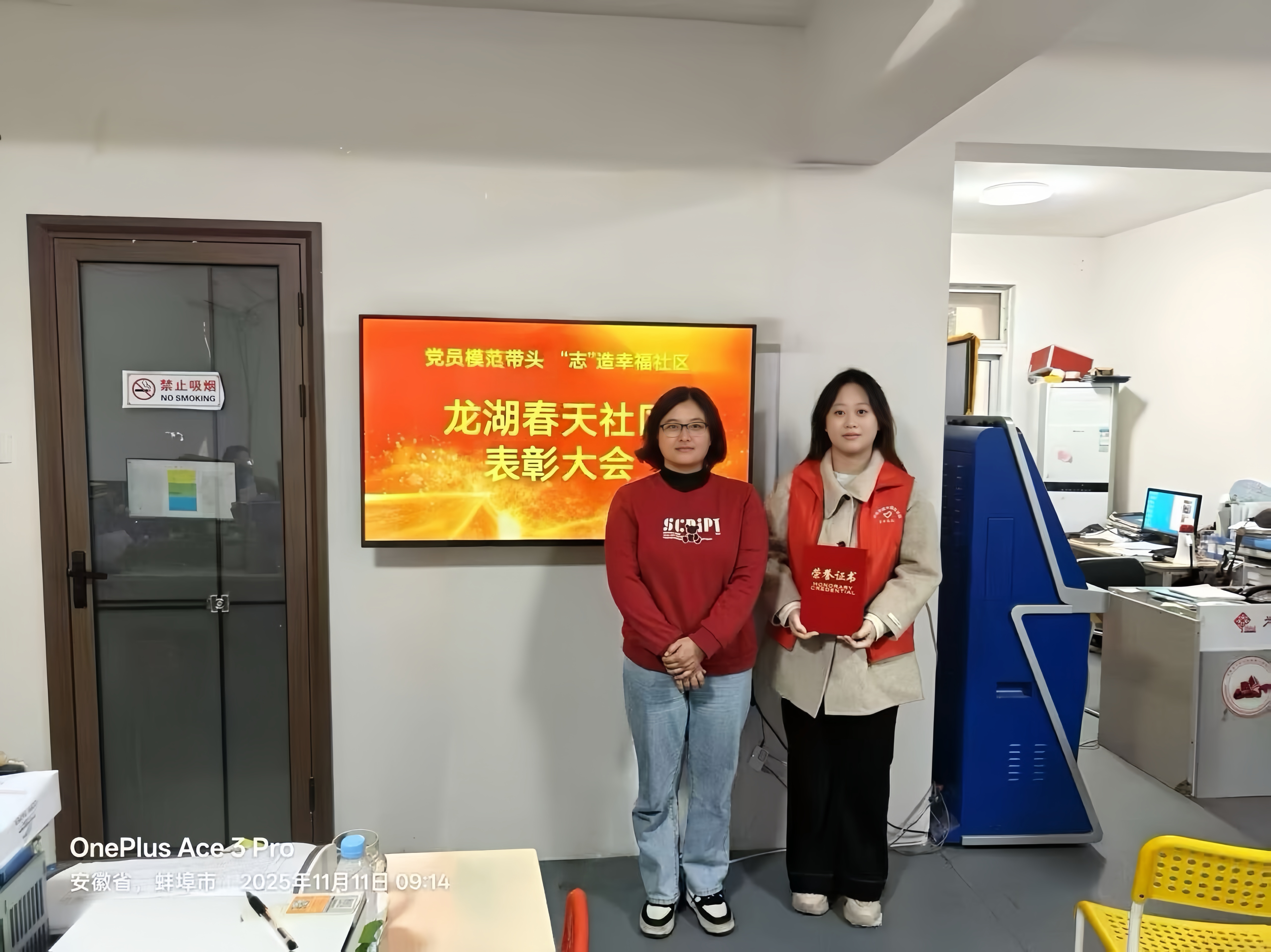 11月11日,东升街道龙湖春天社区召开表彰大会,对太阳集团tyc539MACAU太阳集团tyc539MACAU团委及英语专业教工党支部授予“党员模范带头,志造幸福社区”荣誉称号。此项荣誉,不仅为我院青年志愿者群体树立了榜样,更是我院团委及英语专业教工党支部携手构建“三全育人”实践平台、服务地方发展的生动体现。