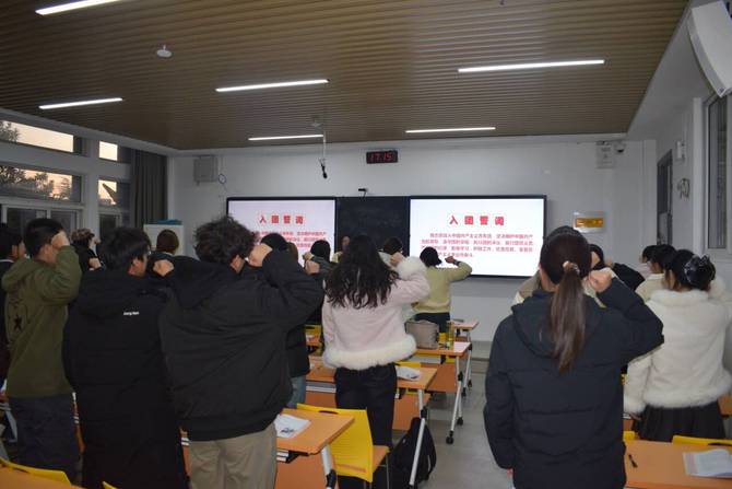 重温入团誓词。10月18日,25级英语3班开展“重温入团誓词”活动。“我志愿加入中国共产主义青年团,坚决拥护中国共产党的领导……”团员们高举右手、紧握右拳,誓言铿锵有力、慷慨激昂。举起的右手承载着共青团员的忠诚,专注的目光凝聚着矢志不渝的坚定。庄严的誓词在教室回荡,仿佛带团员们重回入团时的激动时刻,为共产主义事业奋斗的信仰在心中再次升华。