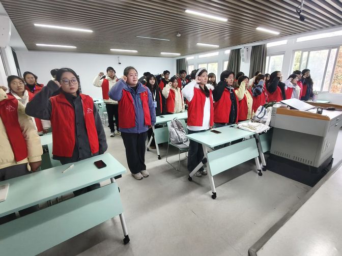本次培训围绕图书馆运营体系、志愿团队建设、服务规范实操等维度展开。培训开篇,市图书馆工作人员介绍了馆方基础概况。实操培训环节聚焦服务能力赋能:从《中国图书馆分类法》22大类标识规则,到便民服务、阅读推广、图书流通等基础模块的流程规范,再到12类特色活动的协助要点,培训实现了志愿服务全场景的专业覆盖。培训同步明确了服务规范与权益保障:志愿者需着统一马甲、规范言行,执行轮班制并保质完成任务;馆方将提供图书分类、自助设备操作等实操培训,年度服务满30小时发放个人时长证书,满9小时发放团队时长证明。外院学子积极主动地投入志愿服务,成为“萤火虫”团队的一员,实现自己的青春价值。培训最后,全体志愿者完成宣誓并合影。
