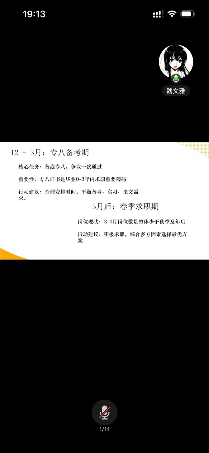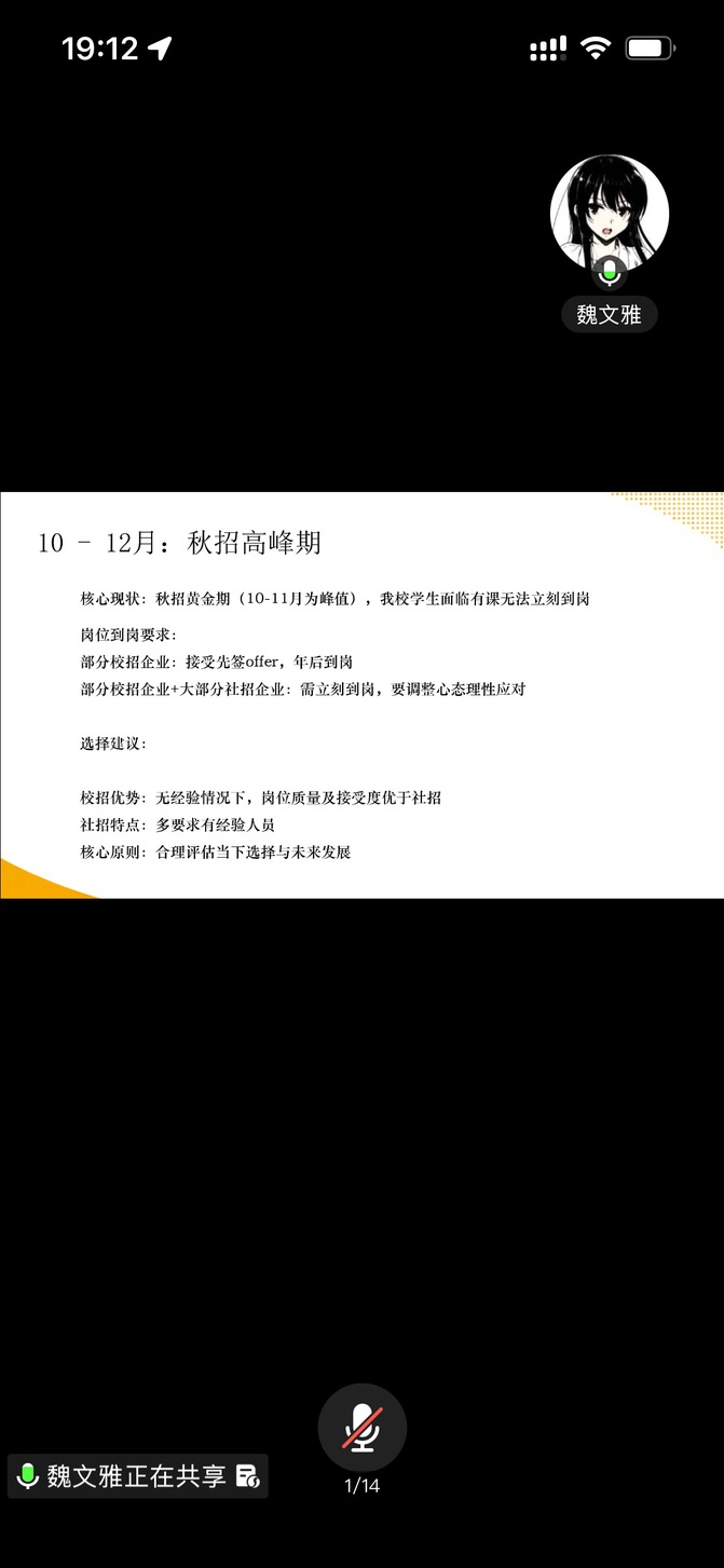 分享中,魏文雅从三大核心板块展开讲解。求职时间线方面,她梳理秋招高峰期、专八备考期及春季求职期的特点与应对策略,针对在校生上课与到岗冲突问题给出校招、社招选择建议,强调专八证书的重要性,提醒合理平衡备考、实习与论文任务。求职选择维度上,她清晰呈现不同层级城市外贸薪资差异,解读合肥、宁波等重点城市就业补贴政策,对比轻工业与重工业、贸易公司与工贸一体企业的优劣,给出企业选择梯度建议,助力学子精准匹配职业方向。简历与面试技巧环节,她分享简历制作核心要求与优化方向,传授“先广投再精投”策略及定制化自我介绍技巧,从着装、内容准备、心态调整等方面给出面试建议,解析常见问题应答逻辑,帮助学子精准把握招聘需求。最后,魏文雅建议同学们综合自身条件与外部因素理性评估职业适配度,尽早规划发展路径。