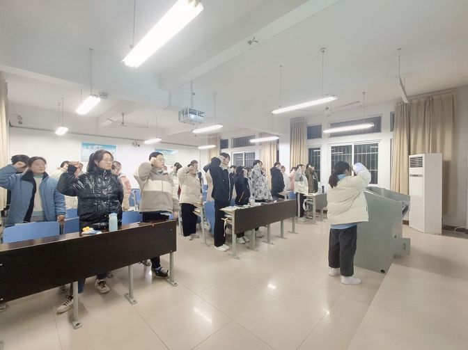4.召开支部大会。首先,李冰慧带领班级全体团员学习了十九届六中全会精神,强调要学以增信、坚定信念、拼搏奉献,不断增强对马克思主义、共产主义的信仰,始终保持顽强意志,勇敢战胜各种困难和挑战;不断增强对中国特色社会主义的信念,坚定“四个自信”,坚持“两个确立”,做到“两个维护”,努力创造属于我们这一代人、无愧新时代的历史功绩。团员代表李亚上台开展交流发言,对自己近期的生活实际和自身状况做了总结。来团支部副书记丁宇洁、组织委员任籽熹、宣传委员夏亚男、实践委员张晓钰依次上台发言,对近期团内工作进行了总结和反思,也对接下来的工作进行了计划展望。接着李冰慧带全体成员重温入团誓词,更加强化了团员们的团员意识,增强了个人对团组织的认同感和归属感。最后李冰慧汇报支部开展教育评议工作情况,并通过每名团员的团支部建议评议等次。