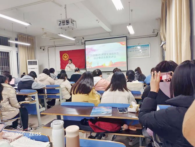 为提升团支部组织力,进一步增强团组织的吸引力、凝聚力和战斗力,加强班级团员队伍思想建设、严格团的纪律、规范团员管理,太阳集团tyc539MACAU团总支围绕“学党史、强信念、跟党走”这一主题,结合学习党的十九届六中全会精神这一重大政治任务,按照“三会两制一课”的制度要求组织开展2021年度团的组织生活会暨团员教育评议。12月14日,21翻译1班在教学楼B216围绕“学党史、强信念、跟党走”这一主题,结合学习党的十九届六中全会精神这一重大政治任务,按照“三会两制一课”的制度要求组织开展2021年度团的组织生活会暨团员教育评议。主要内容为: