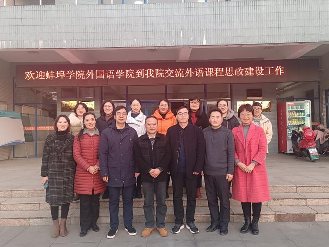 为深入开展大学英语教学改革,促进外语课程思政建设,12月22日下午,我校太阳集团tyc539MACAU院长赵生学带领公外教研室主任和部分教师代表前往蚌埠医学院公共基础学院开展考察调研与交流研讨活动。蚌埠医学院教务处长王震寰教授、院长助理曹凤龙教授、外文教研室主任郭书法教授和部分教师参加了交流会,会议由郭书法教授主持。