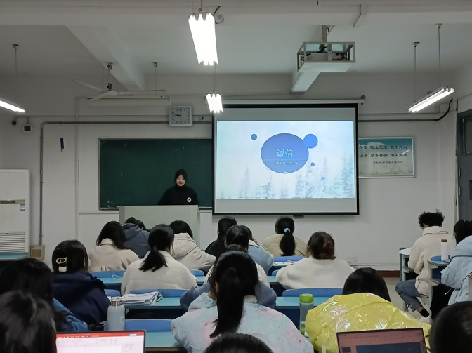 在学生支部书记、辅导员杨小云的指导下,以学生党员为骨干,各班陆续召开主题班会,通过近几年来发生在身边的真实案例,向大家强调了诚信考试的重要性。诚信既是中华民族的传统美德,又是做人的基本道德规范,在国家提出的社会主义价值观中,诚信也占有一席之地。身为大学生,更应该践行诚信考试,正确认识到考试如同一把标尺,是为了衡量一学期以来自身知识水平的高低。诚信考试固然重要,而同学们当下最重要的就是努力学好专业课。主题班会中,2019级英语班学习委员黄栩姌、2020级翻译班学习委员马思宇两位同学,根据自己期末复习情况分享学习经验,着重强调学习是积累的过程,在学习中多理解、多思考,并建议班级同学采用思维导图的方式,加强巩固自我知识。班会最后,各班级现场签署诚信考试承诺书。通过现场签订诚信考试承诺书,强化同学们诚信应考的敬畏之心。