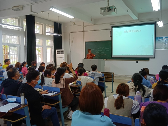 《英语国家社会与文化》作为讲解英语国家历史、文化、政治、经济的重要课程体系,涉及的主要内容为西方国家的思想文化与价值观。朱锋老师从刚刚闭幕的全国“两会”热词的英文表达,引导同学们在中英两国制度对比中,走进英国政治制度具体构架,进一步体会到中国人民代表大会制度是最广泛的民主。在宪法讲述环节,教师结合中华人民共和国宪法,通过观看宪法宣誓的微视频,弘扬宪法精神,树立宪法权威,适时给同学们上了一次普法课。朱锋老师精心设计教学环节,广泛搜集教学资料,采用传统与线上相结合的教学方式,通过学习通发布分组任务、随堂练习、抢答等,使学生积极参与到教学活动中来,课堂气氛活跃;尤其是深入挖掘思政元素,开展对比式教学,是利用第一课堂增强学生道路自信、理论自信、制度自信、文化自信的精彩示范。