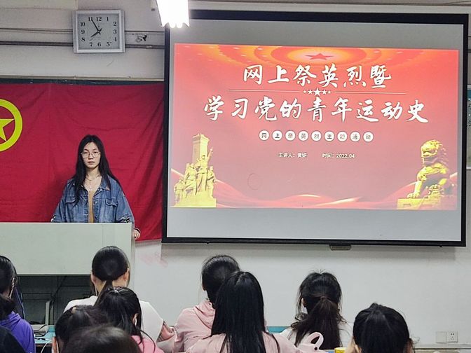 “网上祭英烈暨学习党的青年运动史”主题团日活动。为响应国家号召,悼念革命先烈,缅怀先烈的丰功伟绩,继承光荣传统,4月3日下午,英语专业21级1班团支部举办 “网上祭英烈暨学习党的青年运动史”主题团日活动,全体同学参加。团支书黄妍通过问答的方式向同学们分享了五四运动、一二九运动等著名的青年运动史,并详细地讲述了毛泽东、陈延年等先辈们的革命故事,同学们积极讨论,热情发言。黄妍激情倾诉:“先辈放心,山河无恙!请党放心,强国有我!”团支部副书记刘振林也感慨“今天的幸福生活来之不易,一定不能忘记革命先辈们的付出!”同学们在讨论中追忆先烈,学习爱国精神,受益匪浅。