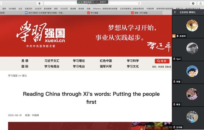 本次例会开展了大学英语课程本学期的首次集体备课,大家围绕大学英语课程思政建设展开讨论。首先,教研室主任带领老师学习了学习强国平台中的“Reading China through Xi’s words”从“习语金句”读懂中国专题,中英文对照的习总书记的金句学习,为大学英语课程思政建设提供了丰富的素材;蔡育红老师分享了她在进行《习近平谈治国理政》中、英文版本比照学习时的心得,为老师们挖掘课程思政素材提供了好的思路;郭嵘老师分享了暑期教师培训专题《深入学习贯彻习近平总书记关于教育的重要论述》的学习情况并结合学习强国学习经验提出课程思政建设的意见。本次集体备课,为大学英语课程思政建设带来了资源、方法和思路的火花碰撞,大学英语课程思政建设定能在相互启迪中结出丰硕的果实。
