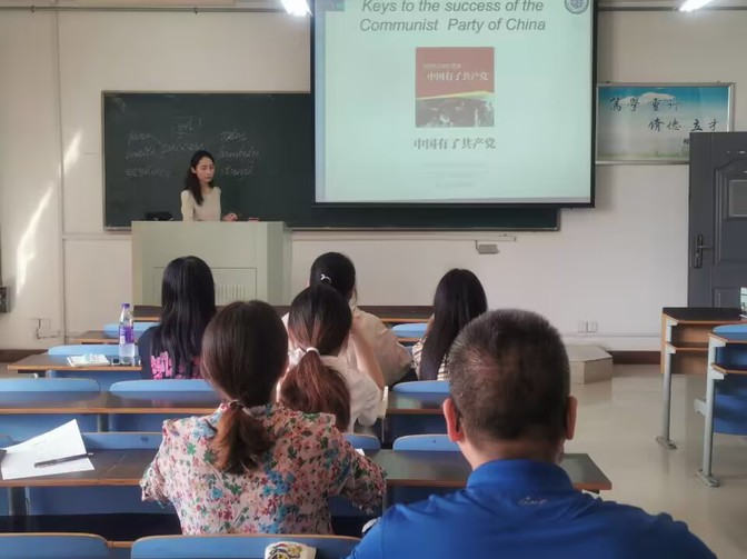 这是大学英语本学期的开学第一课,单元主题“The way to success”。教学过程中,王老师将传统教学与智慧教学有机结合,课堂讨论与学习通任务相辅相成,英语语言学习与立德树人培养互融互通。在语言训练中培养家国情怀,在爱国教育中增进语言技能训练。尤其突出的是,王老师借助学习强国平台《探寻中国共产党成功秘诀》英文版专题,带领学生开启爱国爱党教育,并进行“个人成功”与“国家成功”的思辨大讨论,在个人成功与国家成功关系的讨论中提升学生的思维品格,在“语言+思政”的大课堂中展示大学英语铸魂育人的功能,是扎实推进习近平新时代中国特色社会主义思想“三进”成功探索。