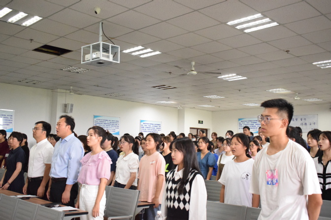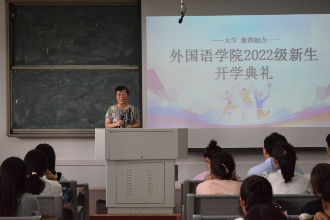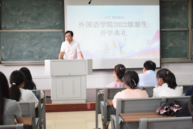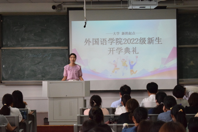 9月13日下午,外国语学院2022级新生开学典礼在G305举行,出席本次典礼的有学院领导班子全体成员、教师代表、新生辅导员及2022级全体新生,典礼由团总支负责人王娜娜主持。