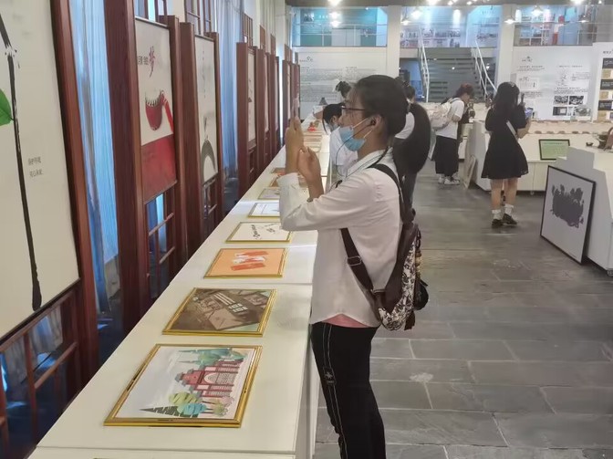 “流经这个城市的淮河是一条什么样的河流?”“淮河滋养下的这片土地孕育了什么样的文明?”“你知道已流过千百年的淮河流域的都城文化吗?”“安丰塘为什么代表了古代淮河流域水利工程的智慧高度?”……一个个主题展示徐徐向同学们展开一幅淮河流域淮河文学、红色文化、科技文化、军事文化、民间音乐、民间美术、民俗文化的历史画卷。短短的几个学时的参观成为一趟文化探索之旅,同学们和来自远古的陶器做近距离接触,从古朴残缺中探视文明的脚步,观摩学校师生以淮河文化为主题创作的手工作品,观赏国家级非物质文化遗产花鼓灯的浓烈喜悦……随着引导员认真的讲解,大家在“围观”和聆听中解开一个个疑问,真切感受着淮河流域的历史悠久和文化资源的丰富多样。“慕了,慕了,没想到蚌埠原来这么古老!”“淮河文化原来这么精彩!”“没想学校还有这样的展览馆!”……成为走出展馆的同学们最多的评价。