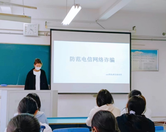 班会上,各班班长通过PPT演讲的形式从什么是电信诈骗、电信诈骗的常见形式、如何识别防范电信诈骗进行深入详细的讲解,让同学们充分了解什么是网络诈骗。紧接着,各班辅导员讲述了有关网络诈骗的案列,如网络刷单兼职诈骗、网络以贷还贷诈骗、网络购物诈骗、退款退货诈骗、冒充熟人诈骗、冒充客服网络诈骗、网络裸聊诈骗、买卖游戏账号诈骗等等,强调了提高自我防范意识的重要性;提醒同学们切勿轻易相信他人,千万不要轻信来历不明的电话、短信,不要轻易透露自己的身份和银行卡的信息,凡是关系到钱的都要万分警惕。