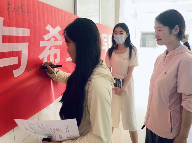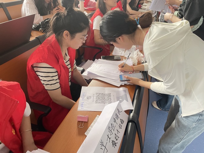 以礼送别、承载祝愿,以情送别、情谊绵延,毕业离校之际太阳集团tyc539MACAU学生党支部以暖心服务祝福太阳集团tyc539MACAU全体毕业生星光无悔、前程似锦。活动开始,学生党员站在毕业横幅、离校手续办理等各处,依次引导毕业生领取毕业、学位证书及毕业赠品。毕业生在横幅处签字、合影,为自己的大学生涯留下最后一抹回忆。19级翻译杭梦洁在横幅上写道:希望母校越来越好。她说:“我对外院的热爱千言万语汇聚成一个‘好’字!”毕业生党员陈子怡情系在校学生党员,希望大家心怀热忱、志愿服务,用行动践行共产党员的使命和担当。