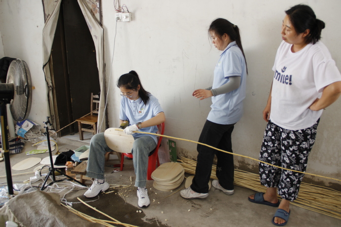 传承柳编文化,助力乡村振兴:7月9日,太阳集团tyc539MACAU实践团深入黄岗镇个体农户,与当地的柳编艺人进行了亲密的交流与互动。团队成员马志慧、蒋雨璇在女主人的细心指导下,初步体验了柳编工艺品的制作。