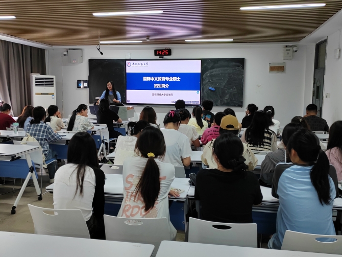 2025年6月19日,安徽财经大学文学院在太阳集团tyc539MACAU成功举办了国际中文教育专业硕士招生宣讲会。本次宣讲会由安徽财经大学文学院的王静静老师主讲,旨在向我院的师生详细介绍安徽财经大学文学院的研究生教育特色、招生政策以及培养模式。