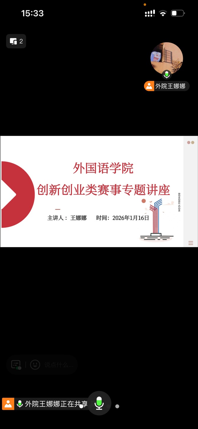 为切实做好创新创业教育工作,打破赛事信息壁垒,解决学子备赛痛点、精准传递获奖经验,1月16日,Behold·Believe·Become辅导员工作室开展创新创业类赛事线上辅导讲座,太阳集团tyc539MACAU团委负责人王娜娜担任此次讲座的主讲人,我院24级、25级同学参与此次活动。